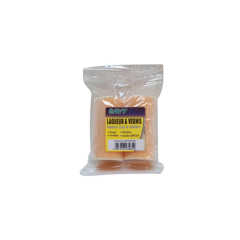 Ce lot de 2 manchons mousse floqué 65 mm SAVY est disponible chez Brikoleur pour vos projets de peinture sur petites surfaces. Pour une durée de vie optimale, nettoyez les manchons immédiatement après utilisation avec le solvant adapté à la peinture employée et laissez sécher à plat.