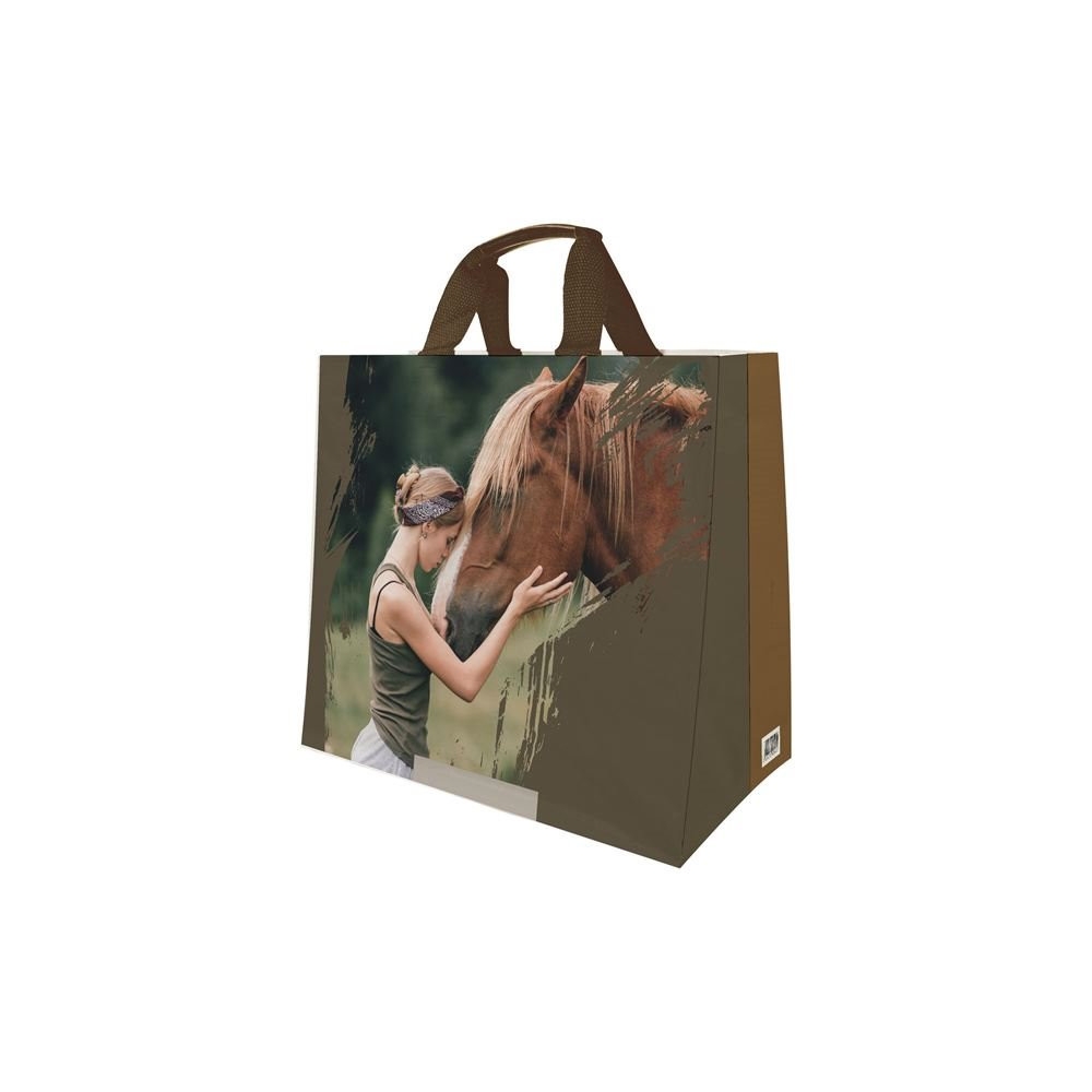 Alliant praticité et originalité, le sac cabas SPHERE motif chevaux en polypropylène tissé séduit par son design équestre et sa robustesse au quotidien. Avec une capacité de 33 litres et des dimensions de 43 + 20 x 38 cm, il offre un espace de rangement idéal pour toutes vos activités.