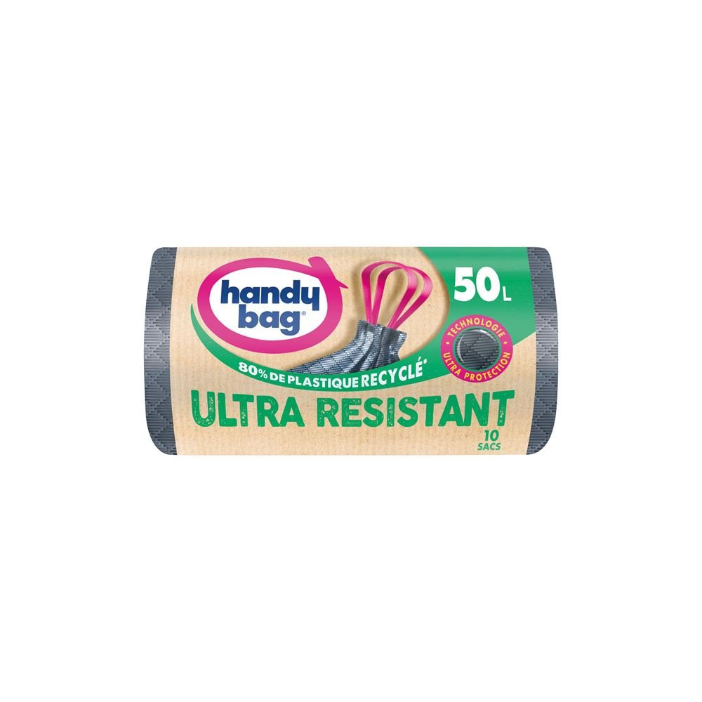Les sacs poubelle HANDY BAG à poignées coulissantes 50 L sont conçus pour simplifier la gestion des déchets du quotidien tout en répondant à des exigences écologiques concrètes. Composés à 80 % de plastique recyclé, dont au moins la moitié issue de la collecte sélective des déchets ménagers, ces sacs s'inscrivent dans une démarche éco-responsable sans compromis sur la performance.