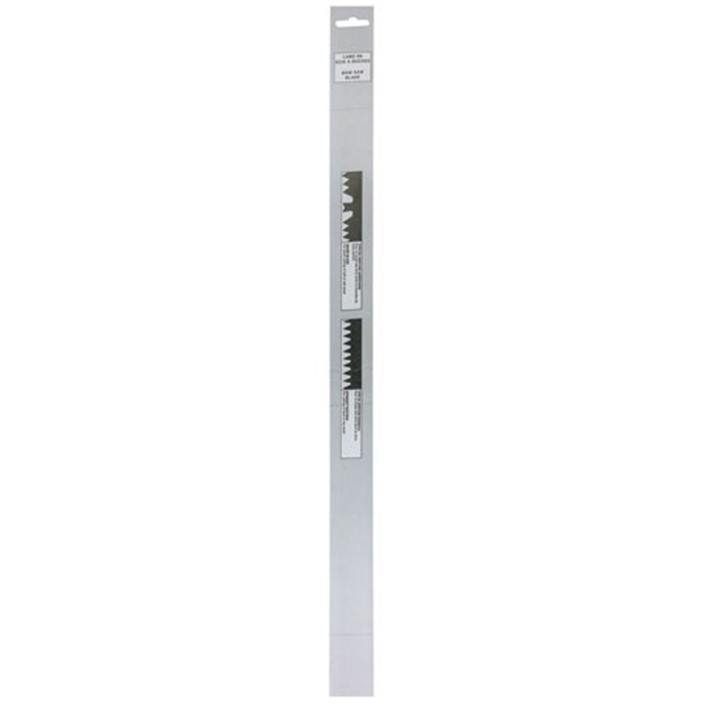 Le remplacement de la lame s'effectue simplement grâce au tendeur de la monture : desserrez le tendeur, retirez la lame usée, installez la nouvelle lame 530 mm et tendez à nouveau. Vérifiez régulièrement la tension de la lame en cours d'utilisation pour maintenir la précision du sciage.