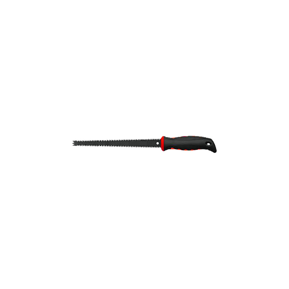 Scie à guichet Double tranchant particulièrement recommandée pour la découpe des plaques de plâtre. | La lame double tranchant facilite les manuvres lors de la coupe. | Elle permet des découpes en pleine plaque (placo, plâtre, béton cellulaire, panneaux bois) | Pointe trident pour amorcer la coupe ou réaliser les avant-trous ou la mise en place des chevilles. | La double denture à triple biseau permet une coupe extrêmement rapide et multi-directionnelle avec une évacuation facilité du plâtre.