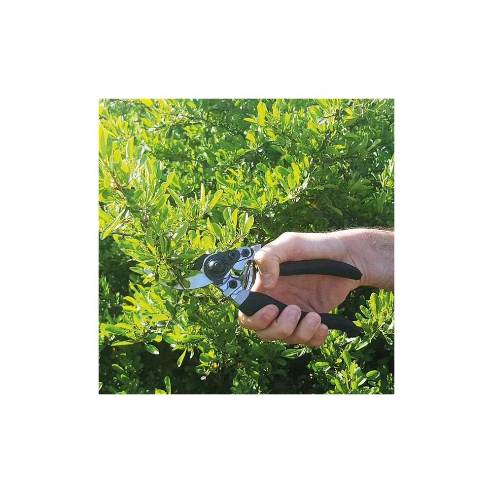 En aluminium. Robuste. Idéal pour les activités générales de taille et la coupe du bois vert, muni de lame en acier trempé avec revêtement anti adhérence pour une coupe franche et aisée.