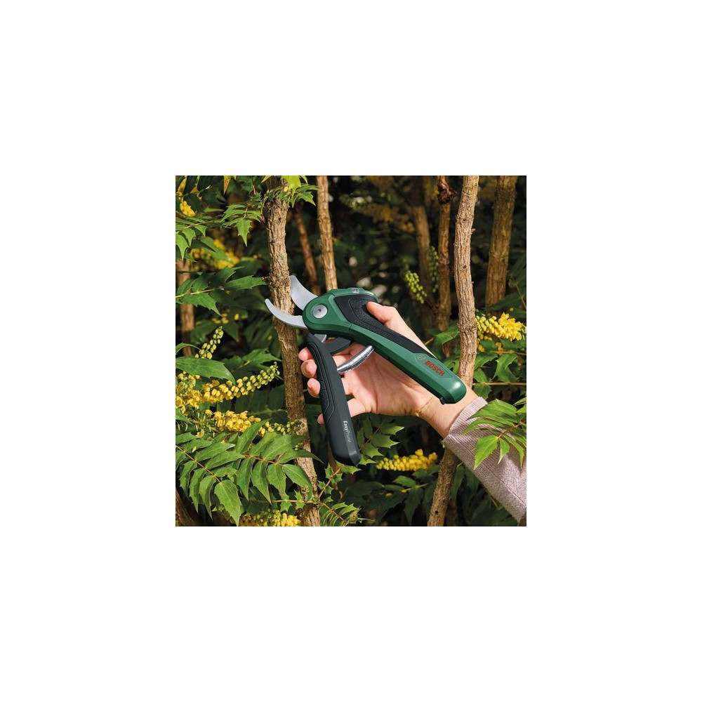 Prenez soin de votre jardin avec précision et confort grâce au sécateur sans fil Bosch EasyPrune 3,6V. Conçu pour les tailles courantes jusqu'à 25 mm de diamètre, cet outil motorisé transforme une corvée fatigante en tâche légère et agréable, même lors de longues sessions de jardinage.