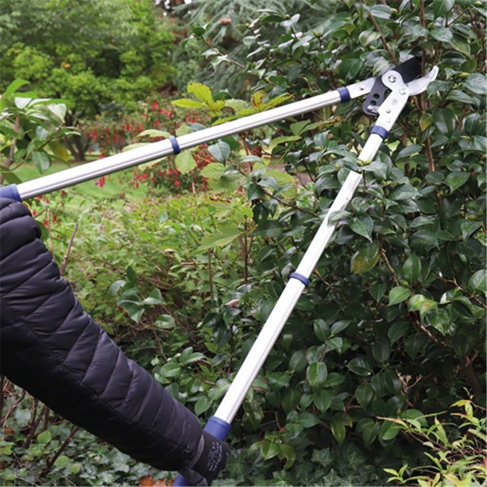 Conseil d'utilisation : réglez la longueur du manche en fonction de la hauteur de coupe souhaitée et verrouillez fermement l'extension avant toute utilisation. Évitez les branches de trop fort diamètre pour ne pas endommager la lame. Après usage, nettoyez la lame au chiffon sec et appliquez un voile d'huile pour prévenir la rouille.