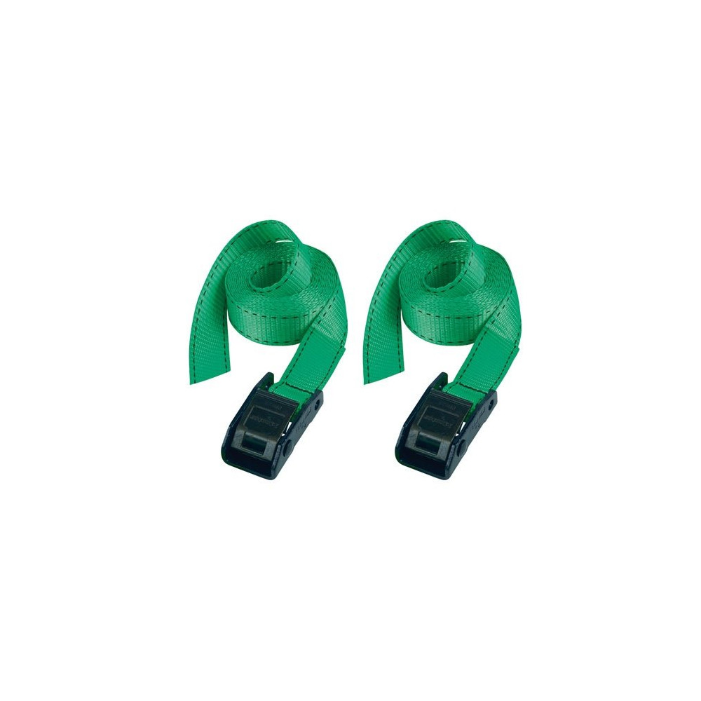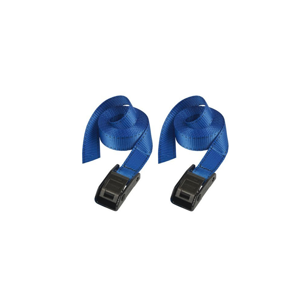 La sangle à bagage sans crochet longueur 2.5 m largeur 25 mm bleu lot de 2 de chez Masterlock est avec une boucle en zamak. Cette sangle peut généralement être utilisée comme sangle d'arrimage lorsqu'un crochet n'est pas nécessaire. Boucle renforcée à dents pour atteindre une capacité d'arrimage de 150 Kg. La sangle permet de sécuriser et d'attacher valises, cartons, matelas, meubles, matériel sportif et autres. Idéal pour les déménagements et une utilisation privée ou professionnelle. La sangle