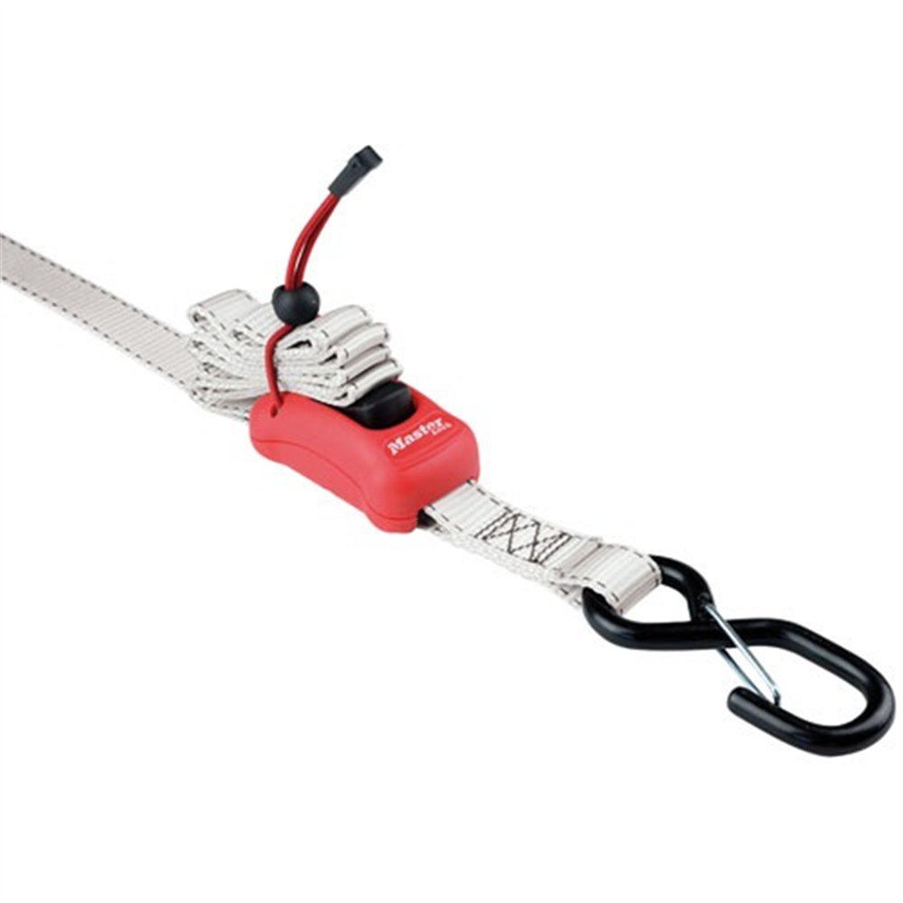 La sangle d'arrimage pré-montée à boucle autobloquante crochet S longueur 25 m largeur 25 mm gris de chez Masterlock est idéal pour fixer facilement et en toute sécurité une charge sur une voiture ou une remorque… Sangle pré-montée dans la boucle, prête à l’emploi pour une utilisation plus facile et en toute sécurité. Bouton poussoir pour ajuster la longueur de la sangle est pratique et simple à manier. Crochet S avec clip de rétention donne une sécurité supplémentaire : la sangle reste attachée