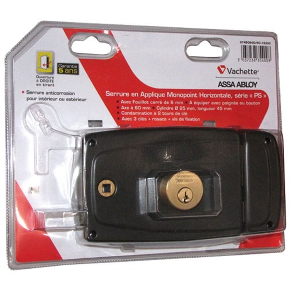 Ce modèle fonctionne à fouillot avec un carré de 6 mm, offrant une compatibilité optimale avec la plupart des béquilles et poignées standards du marché. Sa conception horizontale droite facilite une installation rapide en applique, sans nécessiter de fraisage dans la porte. Elle est livrée avec 2 clés pour un usage immédiat dès la pose.