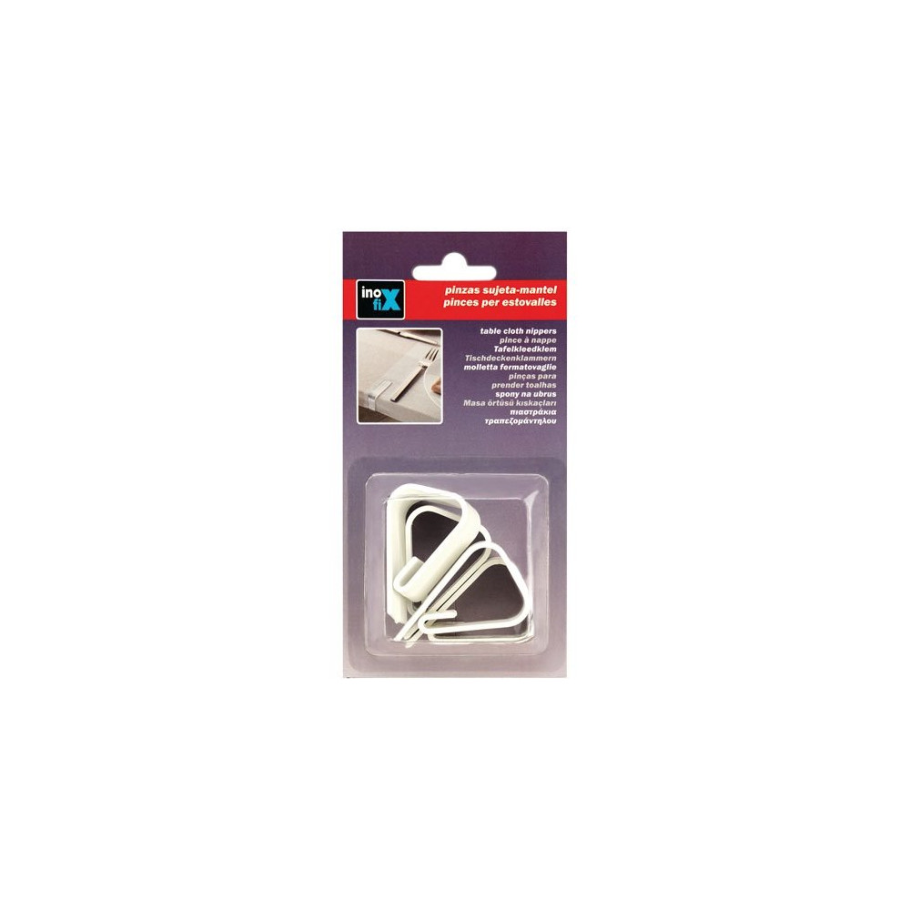 Ne laissez plus le vent emporter votre nappe lors de vos repas en extérieur ! Les pinces nappe plastique blanc INOFIX, vendues par lot de 4, sont des accessoires malins et discrets conçus pour maintenir fermement nappes et couvre-tables sur le bord de la table, quelle que soit la météo.