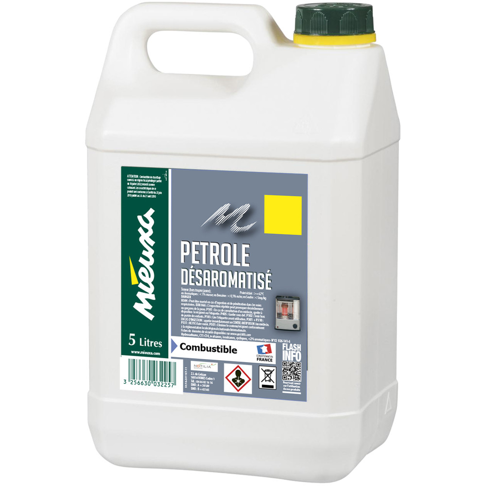 Le pétrole désaromatisé MIEUXA en bidon de 5L est un produit multifonction indispensable dans tout atelier ou local technique. Contrairement au pétrole traditionnel, sa formulation désaromatisée lui confère une odeur nettement réduite, ce qui le rend bien plus agréable à utiliser au quotidien, en intérieur comme en extérieur.