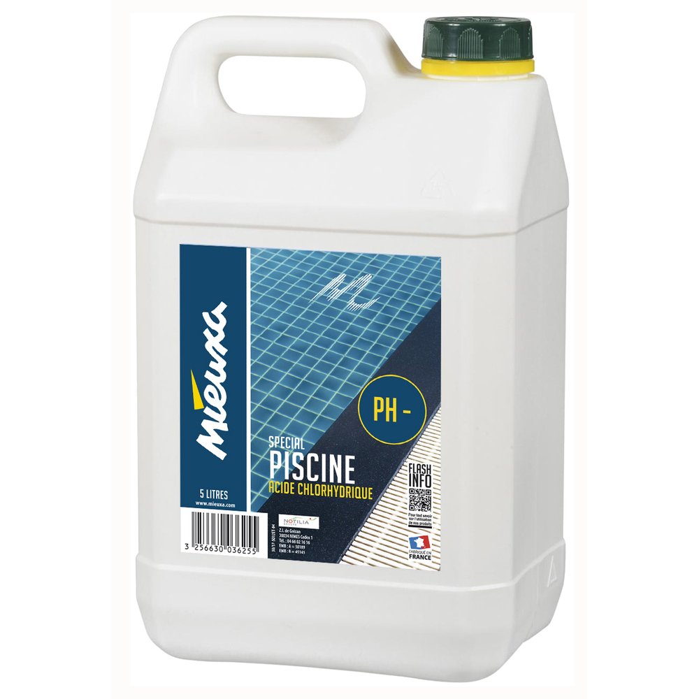 L'acide chlorhydrique spécial piscine MIEUXA en bidon de 5 litres est un produit chimique incontournable pour l'entretien de votre bassin et de ses équipements. Formulé à forte concentration, il agit rapidement et efficacement là où les produits classiques montrent leurs limites. Son conditionnement 5 litres offre une belle autonomie pour les traitements saisonniers ou répétés.