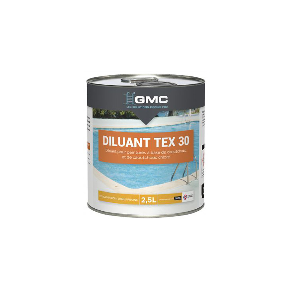 Le Diluant TEX 30 de COMUS est un produit indispensable pour les travaux d'application de peinture caoutchouc, notamment la gamme COMUS PISCINE. Conditionné en bidon de 2,5 litres, il permet d'ajuster facilement la viscosité de vos peintures pour garantir une application fluide, homogène et professionnelle sur vos surfaces.