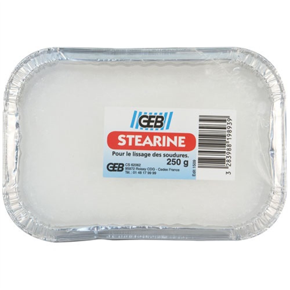 La stéarine GEB en pain de 250g est un produit technique incontournable pour les travaux de soudure et de brasage en plomberie. Issue d'un procédé de saponification, cette stéarine se présente sous forme d'un pain solide facile à manipuler et à doser, offrant un lissage précis des cordons de soudure et de brasure sur les métaux.
