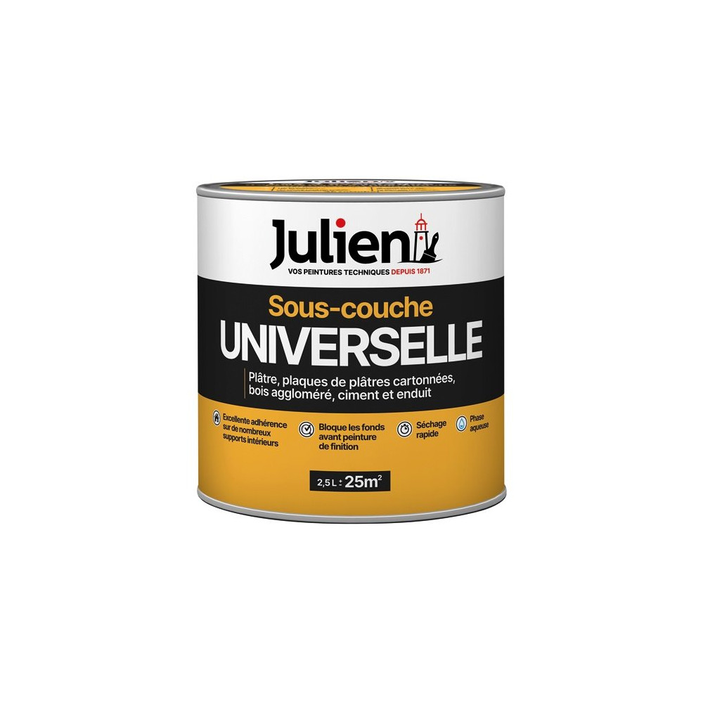 Qu'il s'agisse de rénover un appartement entier, de préparer des murs avant pose de papier peint ou de reprendre des plafonds, la sous-couche universelle JULIEN en format 2,5 L est le point de départ idéal pour des travaux de peinture intérieure réussis. Sa formulation polyvalente lui permet d'adhérer parfaitement sur une large palette de supports intérieurs.