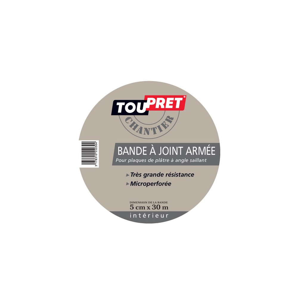 La bande à joints armée Toupret de 5 cm x 30 m est l'accessoire professionnel indispensable pour traiter les joints entre plaques de plâtre avec fiabilité et durabilité. Conçue spécifiquement pour les bords amincis, elle renforce mécaniquement les jonctions de plaques et prévient l'apparition de fissures au niveau des joints, garantissant ainsi une surface parfaitement plane avant peinture.