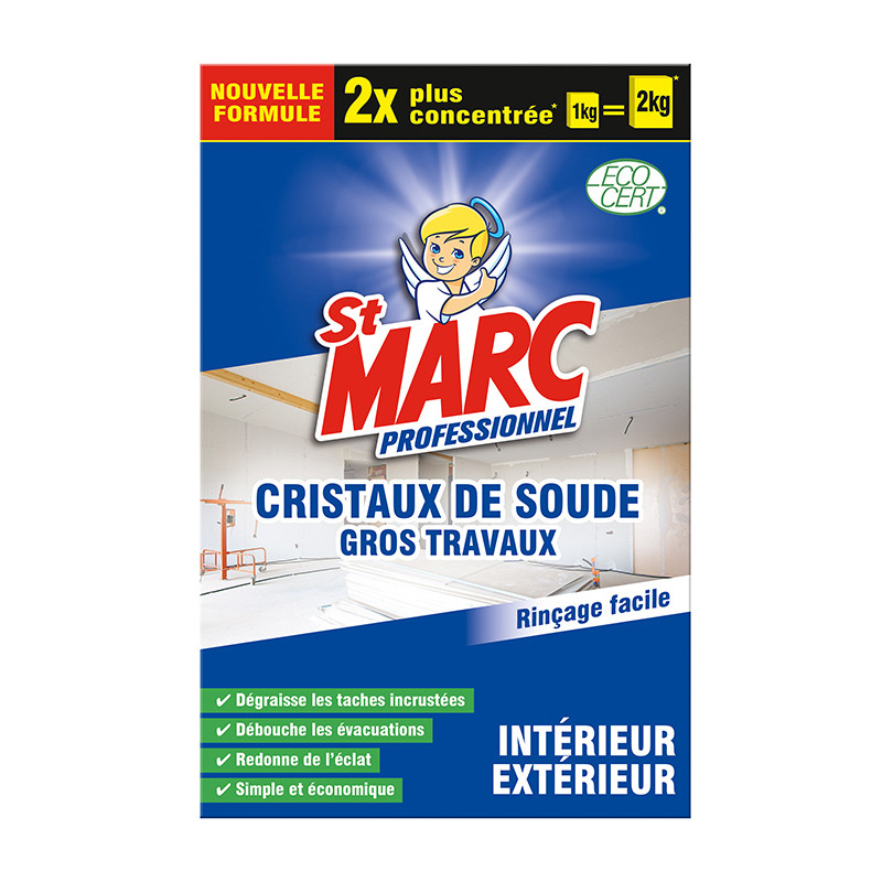 Incontournable dans la boîte à outils de tout bricoleur ou professionnel du bâtiment, les Cristaux de Soude Professionnel St Marc en format 1 kg sont le produit multi-usage par excellence pour le dégraissage, le débouchage et le nettoyage intensif. Cette formule concentrée, issue de la gamme Gros Travaux de St Marc, est spécifiquement formulée pour répondre aux besoins les plus exigeants, aussi bien en intérieur qu'en extérieur.