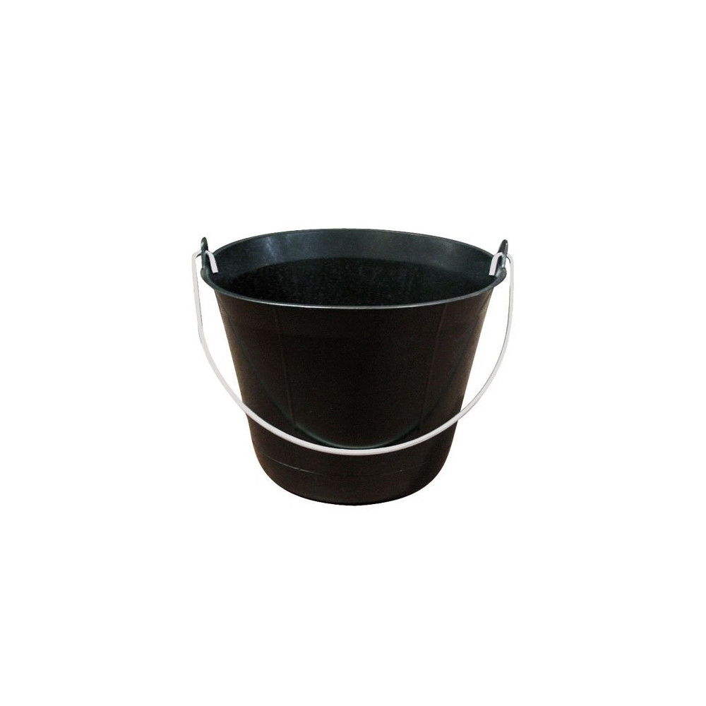 Corps gradué en polyéthylène noir. Oreilles renforcées, nervures longitudinales, anse en acier galvanisé avec ou sans oeillets de renfort.