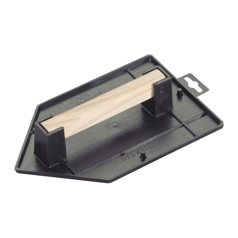 Taloche pointue pour travaux usuels tels que l'application d'enduits ou de plâtres, ainsi que le lissage des surfaces. | Dotée d'une poignée centrale polyvalente en bois qui permet une utilisation à la fois verticale pour l'application d'enduit et horizontale pour le lissage avec une truelle.