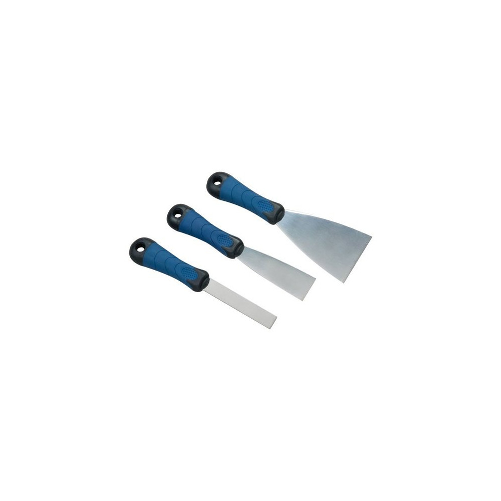 Polyvalence et précision sont les maîtres-mots de ce lot de 3 couteaux à enduire SAVY à manche bimatière. Réunis dans un même coffret, les lames en acier de 2 cm, 4 cm et 8 cm couvrent l'ensemble des besoins courants en travaux de peinture, d'enduit et de finition, du détail le plus fin aux surfaces plus larges.