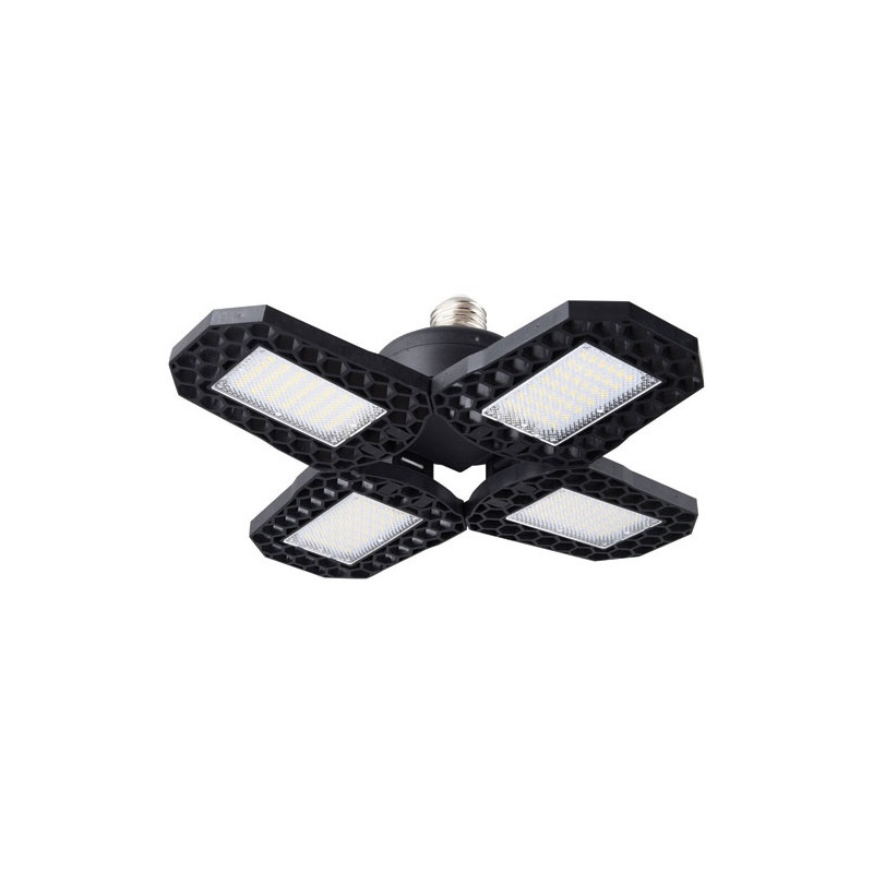 S'adapte à toute douille E27, 4 ailes orientables, blanc neutre, dim 70 cm x 10.30 cm x 11 cm.