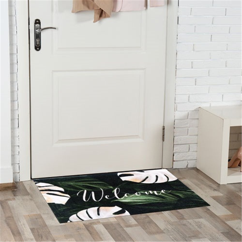 Bienvenue sous les tropiques avec le tapis Boston IDMAT 50x80 cm motif Jungle Welcome ! Ce tapis d'entrée au décor végétal exotique conjugue l'invitation chaleureuse du mot « Welcome » à un univers luxuriant de feuillages, pour accueillir vos invités avec originalité et bonne humeur. L'impression encre sublimation garantit la fidélité des couleurs et leur résistance dans le temps.