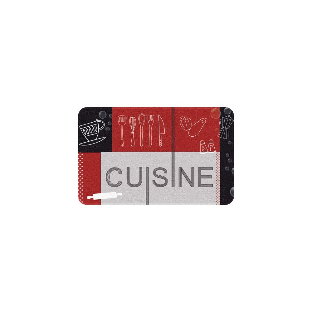 Apportez une touche de caractère à votre cuisine avec le tapis Décor de Cuisine IDMAT en coloris noir et rouge, format 50 x 80 cm. Son graphisme dynamique aux accents cuisine s'intègre avec style dans tous les intérieurs, des plus contemporains aux plus chaleureux, tout en remplissant parfaitement sa fonction protectrice au sol.