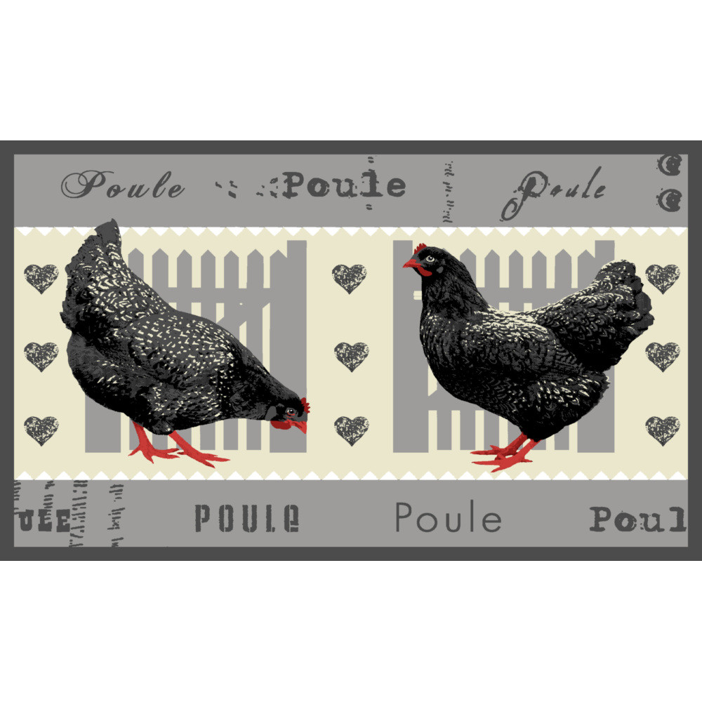 Associé au modèle Poule 1, ce tapis permet de créer une mise en scène décorative homogène dans plusieurs pièces ou sur différentes zones d'une même cuisine. Son entretien est simple : un passage régulier à l'aspirateur suffit à maintenir le velours en parfait état. Pensez à l'associer à un tapis antidérapant si votre sol est carrelé ou parqueté lisse.