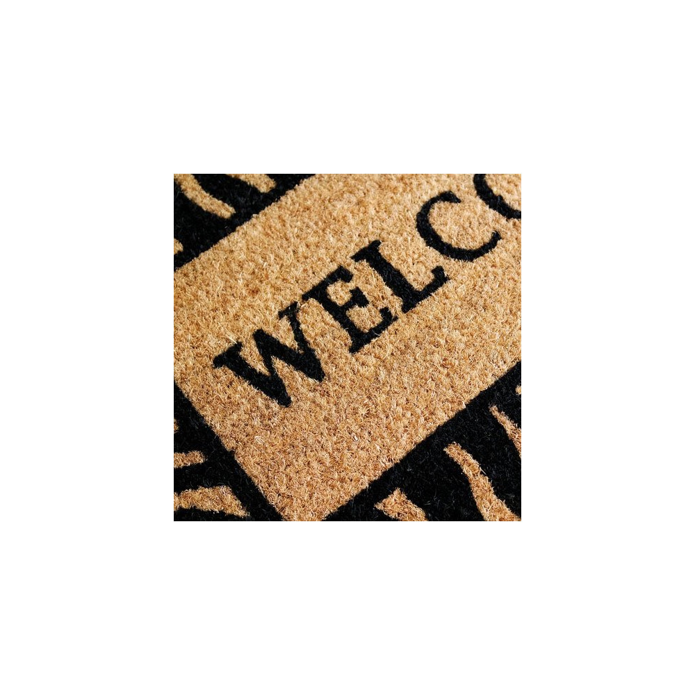 Sa robustesse en fait un allié idéal pour les entrées à fort passage. Le motif « Welcome » en filigrane rappelle avec humour sa mission première : accueillir les invités tout en préservant la propreté du sol. Semelle PVC incluse pour un maintien optimal sur carrelage, parquet ou béton.