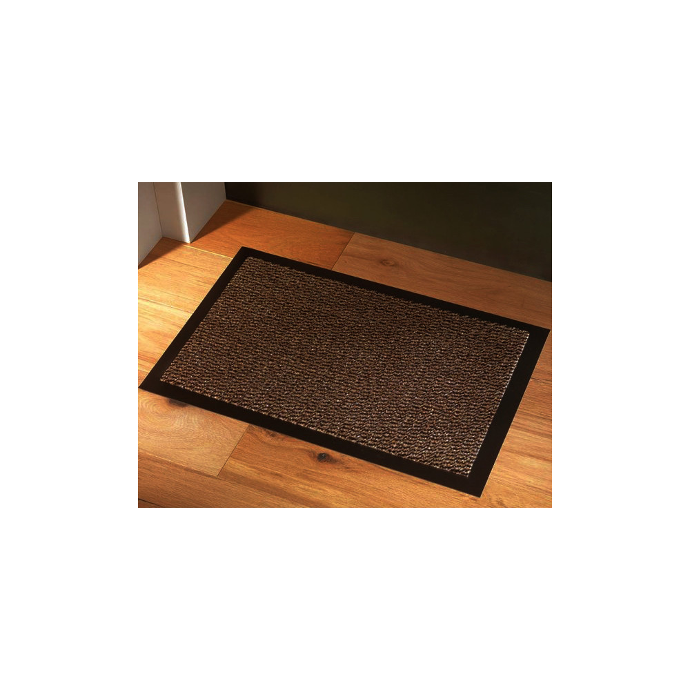 Tapis mange poussière synthétique. | Fibres 100% polypropylène - sous couche vinyle antidérapant. | | Aspect de surface : velours | Technique de fabrication : tufting 5/32" | Composition du velours : 100%PP | Dossier : PVC | Poids total : ca. 3 150gr/m² | Hauteur de poil : ca. 5mm | Hauteur totale : ca. 8mm | Nombre de points : ca. 68 000/m²