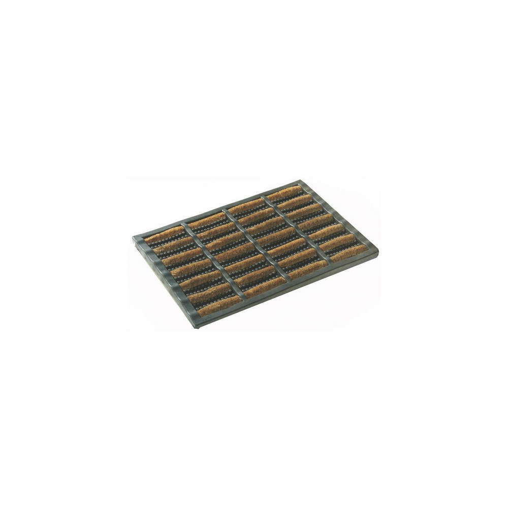 Les fibres de coco, réputées pour leur capacité à gratter les semelles en profondeur, captent efficacement la boue, la terre et les débris. La structure caoutchouc dominante (75 %) confère au tapis une excellente stabilité sur le sol, une résistance à l'usure et une imperméabilité partielle qui facilite l'entretien. Le format 40 x 60 cm est idéal pour la plupart des entrées de maison ou d'appartement.