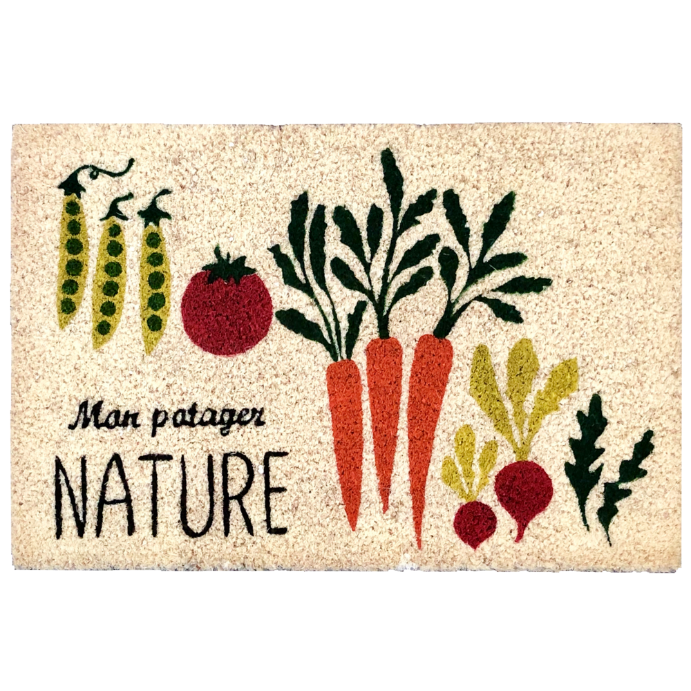 Pour les amoureux du jardinage et de la nature, le tapis brosse coco imprimé Mon Potager de BTB au format 40x60 cm est une façon pleine de fraîcheur et d'humour de personnaliser l'entrée de sa maison. Son motif végétal inspiré du potager apporte une note champêtre et originale qui fera sourire vos invités dès le seuil.