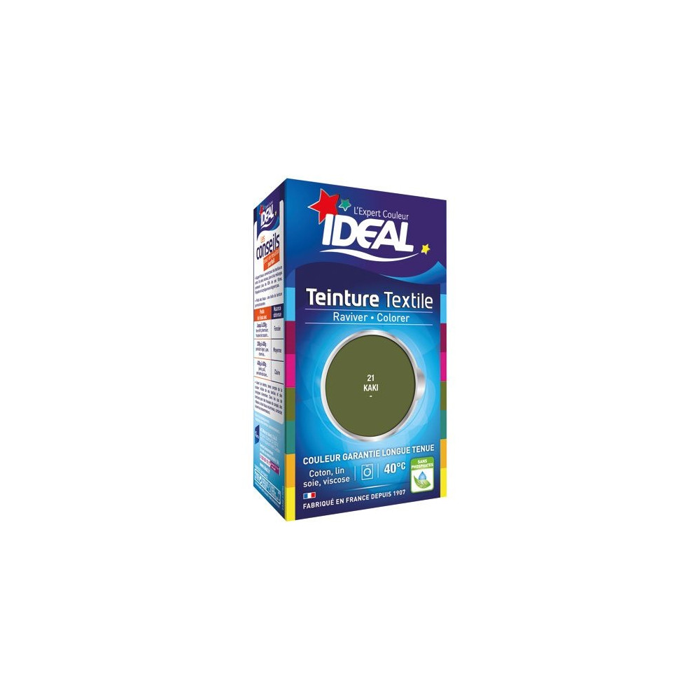 Conseils créatifs : Pour une teinte kaki plus foncée ou plus originale, mélangez ce coloris avec un peu de teinture marron ou noir IDEAL. Respectez toujours la proportion de tissu recommandée pour garantir l'homogénéité du résultat. Passez un programme de rinçage à vide après l'opération pour protéger vos prochains lavages.