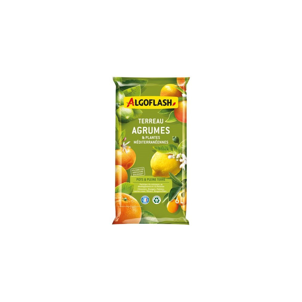 Oliviers majestueux, citronniers parfumés, lauriers roses généreux… les plantes méditerranéennes et les agrumes ont des exigences culturales bien précises que ce terreau Algoflash Agrumes & Plantes Méditerranéennes en 6 litres a été conçu pour satisfaire pleinement. Loin d'un terreau universel, cette formulation spécifique prend en compte les habitudes de ces espèces natives des régions chaudes et sèches : enracinement profond, sensibilité à l'excès d'eau et goût pour les sols minéraux bien structurés.