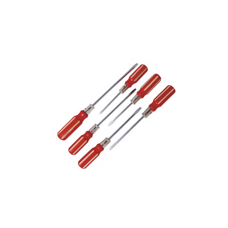 Jeu de 6 Tournevis polyvalents avec un manche en bois. | Comprend 3 tournevis plats et 3 tournevis cruciformes. | Le lot essentiel pour les petits travaux de vissage / dévissage de tous les jours.