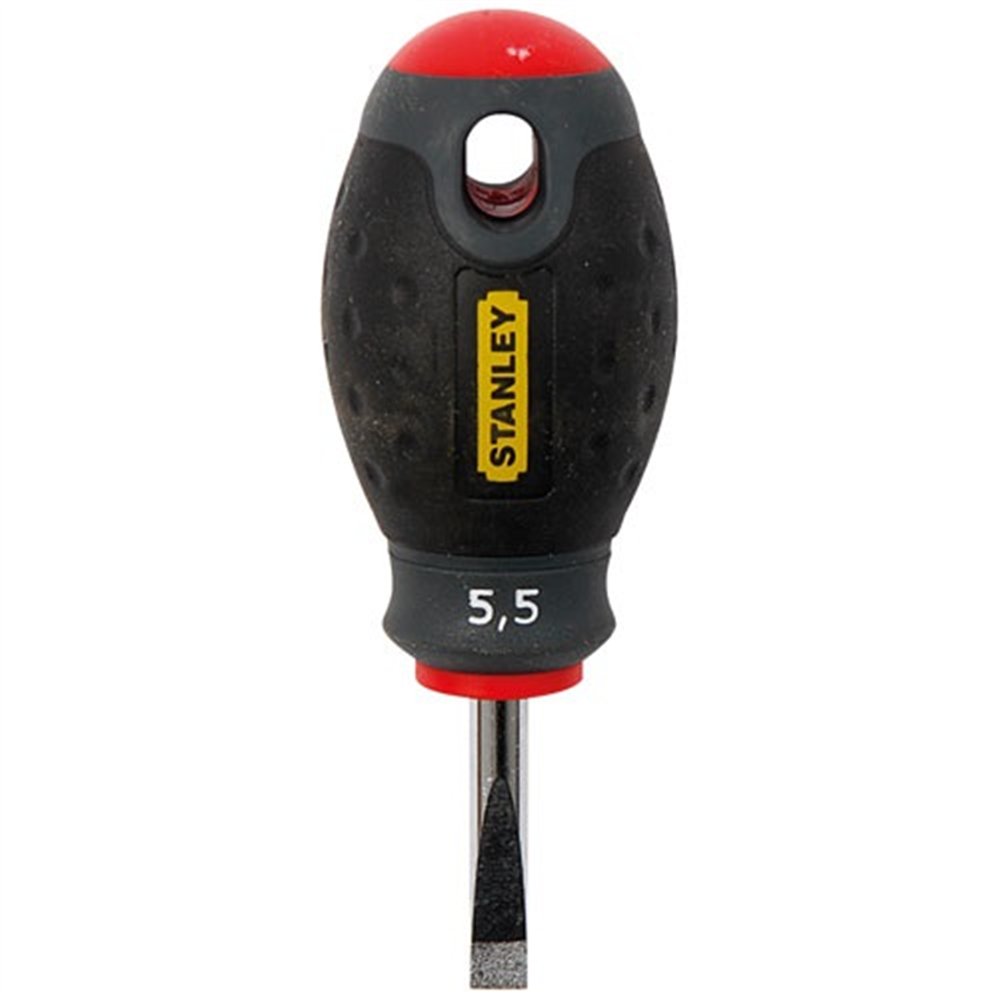 Spécialement pensé pour les travaux en électricité, le tournevis FATMAX électricien boule 5,5 x 30 mm de STANLEY se distingue par son format compact et son embout plat à tête boule, particulièrement adapté aux interventions précises dans les tableaux électriques, boîtes de dérivation et bornes de connexion. Sa lame de 5,5 mm de large pour 30 mm de longueur en fait un outil de précision pour les travaux en espace confiné.
