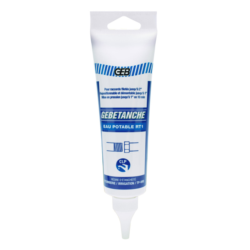 Gebetanche RT1 de GEB est une résine d'étanchéité anaérobie au PTFE, conditionnée en tube de 50 ml, spécialement formulée pour assurer une étanchéité fiable et durable sur les raccords filetés métalliques, qu'ils soient coniques ou cylindriques. Homologuée pour les circuits d'eau potable, elle répond aux exigences les plus strictes en matière de sanitaire.
