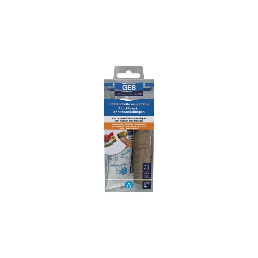 Le kit étanche eau potable GEB est la solution de référence pour garantir l'étanchéité parfaite de vos raccords à visser métalliques sur tous types de circuits : eau froide, eau chaude et vapeur. Conçu pour les professionnels comme pour les bricoleurs avertis, ce kit associe une pâte d'étanchéité et une bobine de filasse pour un résultat fiable et durable dès la première application.