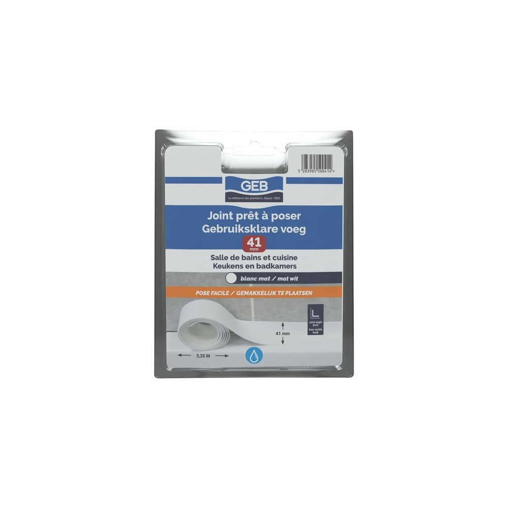Finies les applications de mastic laborieuses et les finitions inégales : le joint d'étanchéité préformé GEB en coloris blanc, format 3,35 m x 22 mm, révolutionne la pose des joints de salle de bains et de cuisine. Conçu pour s'adapter aux espaces standard entre un appareil sanitaire et le mur ou le carrelage, il offre un résultat propre, net et esthétique sans outil particulier.