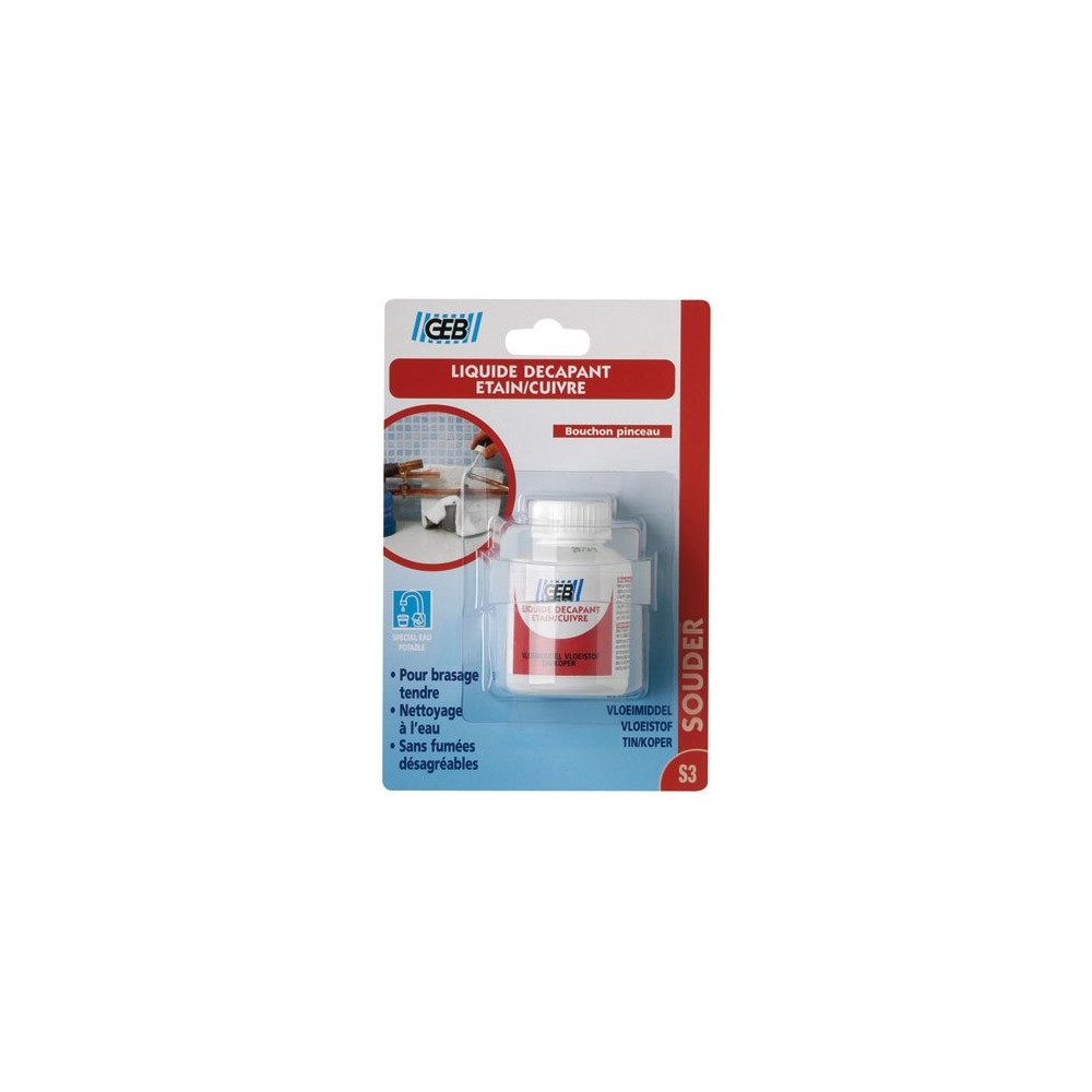 Pour l'utiliser, appliquez une fine couche de décapant sur les deux surfaces à assembler à l'aide d'un pinceau ou de l'embout du tube, chauffez le raccord avec un chalumeau jusqu'à atteindre la température d'activité, puis amenez la soudure à étain au contact du joint. Rincez soigneusement à l'eau après refroidissement pour éliminer les résidus de flux. Retrouvez ce décapant GEB 50 ml et tous les accessoires de brasage chez Brikoleur.