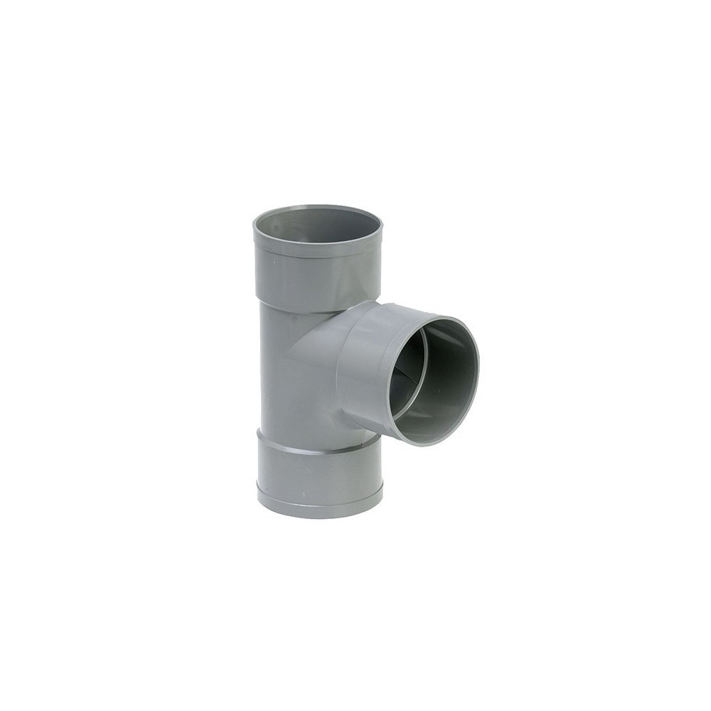 La culotte té PVC femelle-femelle 87° diamètre 100 mm de GIRPI est un raccord de dérivation essentiel pour tout réseau d'évacuation. Elle permet de connecter un branchement latéral à angle de 87° sur une canalisation principale, facilitant ainsi la collecte des eaux usées (EU) ou des eaux vannes (EV) provenant de plusieurs appareils sanitaires. Fabriquée en PVC gris, elle est prévue pour un assemblage par collage.