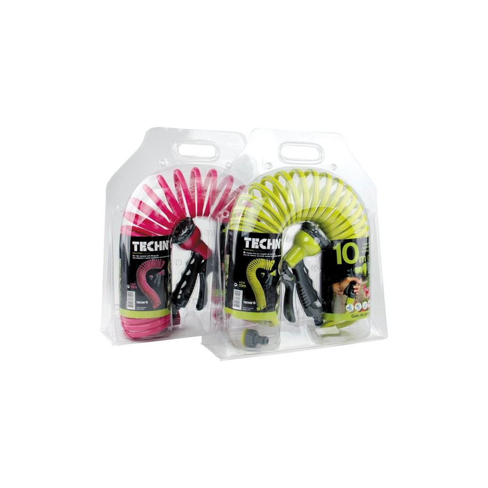 Compact, coloré et redoutablement pratique, le tuyau flexible torsadé Techn coloris anis 9 mm, longueur 10 m est la solution d'arrosage idéale pour les espaces réduits. Sa conception torsadée lui permet de s'étirer à la demande et de se rétracter automatiquement, limitant les nœuds et l'encombrement — un vrai atout sur un balcon, une terrasse ou dans un garage.
