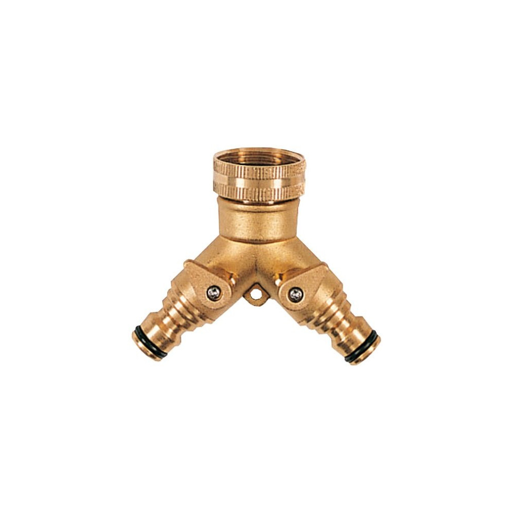 Le nez de robinet 2 voies en laiton automatique RACO EXPERT (réf. 55035b) est une solution de distribution d'eau particulièrement pratique pour les jardiniers souhaitant alimenter deux circuits d'arrosage simultanément depuis un seul point d'eau. Grâce à son mécanisme automatique, la connexion et la déconnexion des tuyaux s'effectuent en un geste simple et rapide, sans outils.