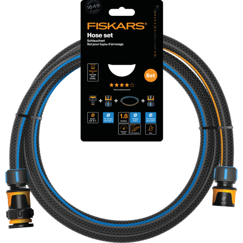 FISKARS - Set Tuyau D'arrosage 1.8M Q4 13mm + Raccords