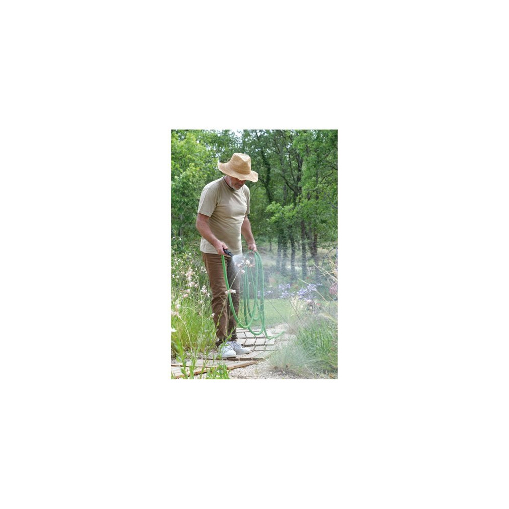 Ce kit complet est livré avec tout le nécessaire pour une mise en service immédiate. Sa couleur verte s'intègre discrètement dans l'environnement végétal du jardin, et sa longueur de 7,5 mètres est idéale pour les balcons spacieux, les terrasses ou les petits jardins où la mobilité est un avantage clé.