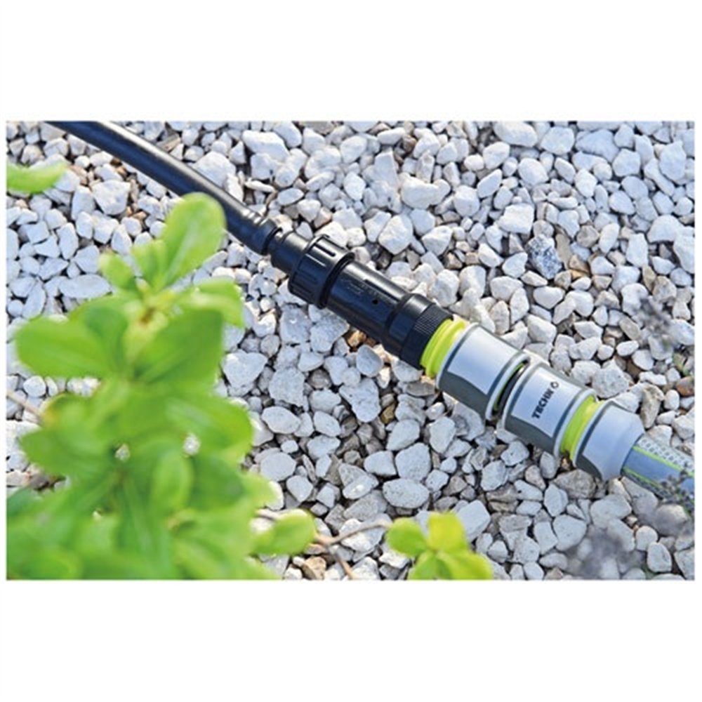 Avant l'achat, vérifiez que votre tuyau d'arrosage est bien en diamètre 15 mm pour assurer la compatibilité. Ce raccord Techn est disponible chez Brikoleur et s'intègre parfaitement dans un système d'arrosage modulaire. Il est recommandé de protéger les raccords plastiques du gel en les rangeant à l'intérieur en hiver.