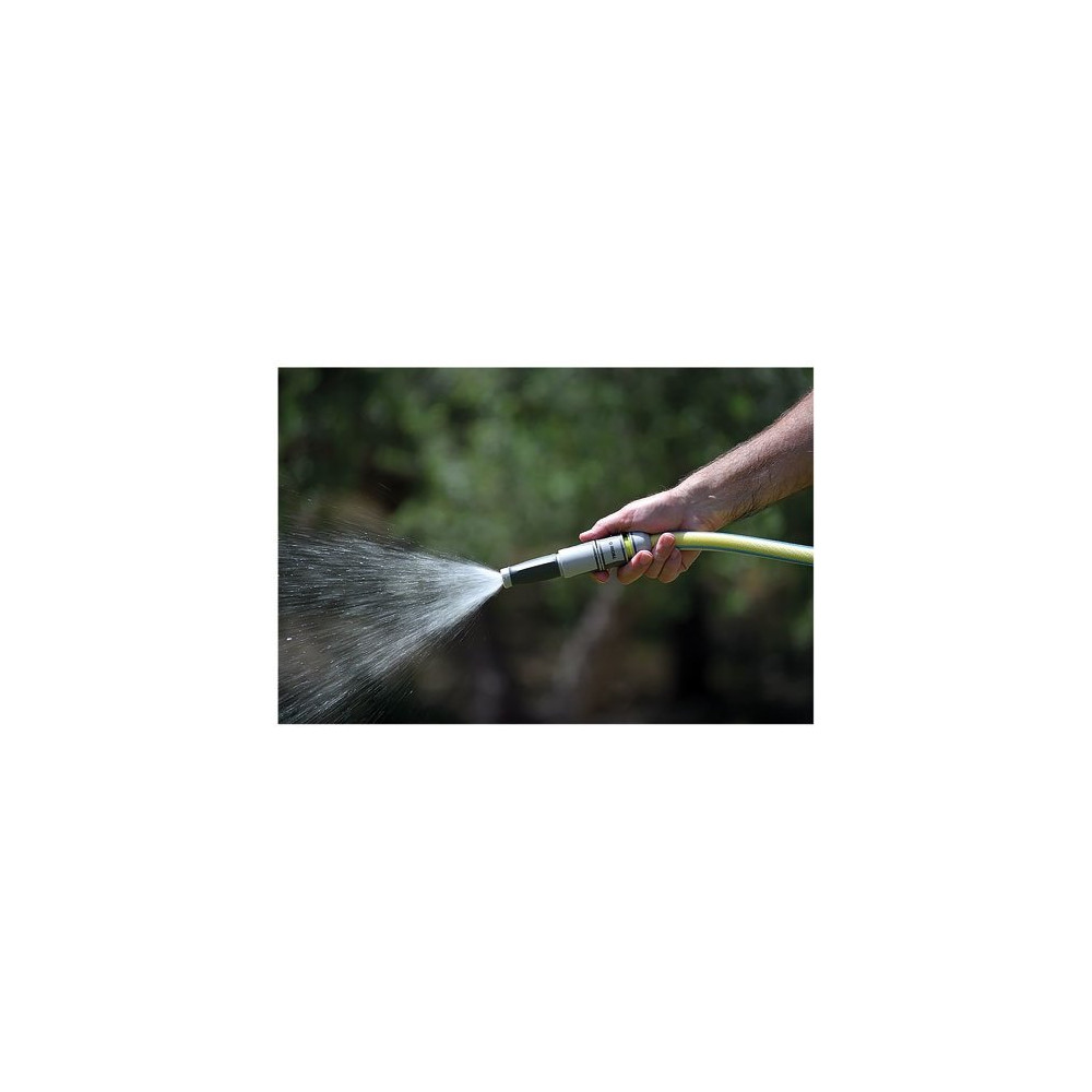 L'atout majeur de cette lance réside dans sa buse à jet entièrement réglable, permettant de passer en douceur d'un jet concentré et puissant à un jet diffus type brouillard, parfaitement adapté à l'arrosage des semis, des plantes fragiles ou des fleurs. Ce réglage continu s'effectue d'une simple rotation, sans interrompre le flux.