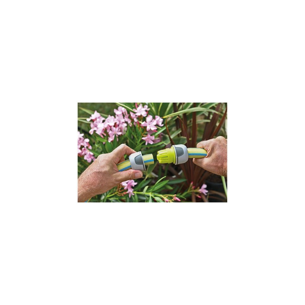 Un tuyau coupé accidentellement ou présentant une fuite localisée n'est pas forcément bon à jeter. Le réparateur universel bimatière TECHN ø 19 mm permet de réparer rapidement et efficacement un tuyau endommagé, compatible avec tous les diamètres de ø 12,5 mm à ø 19 mm. Une solution économique et écologique pour prolonger la durée de vie de son installation d'arrosage.