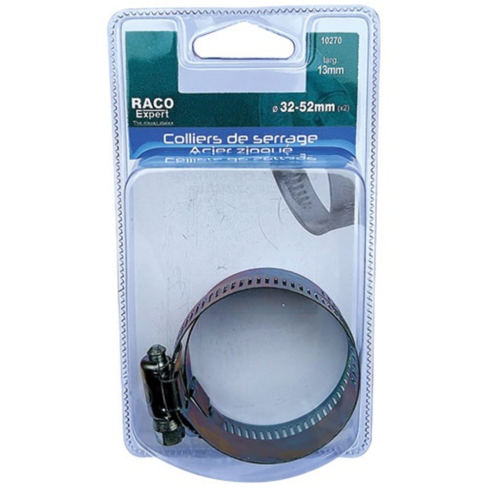 Les colliers de serrage RACO EXPERT en acier à bande 14 mm sont conçus pour assurer une fixation fiable et durable des tuyaux d'arrosage, durites et flexibles. Vendus par lot de 2, ils couvrent une plage de serrage allant de 32 mm à 52 mm de diamètre, ce qui les rend polyvalents pour de nombreuses installations extérieures ou sous pression.