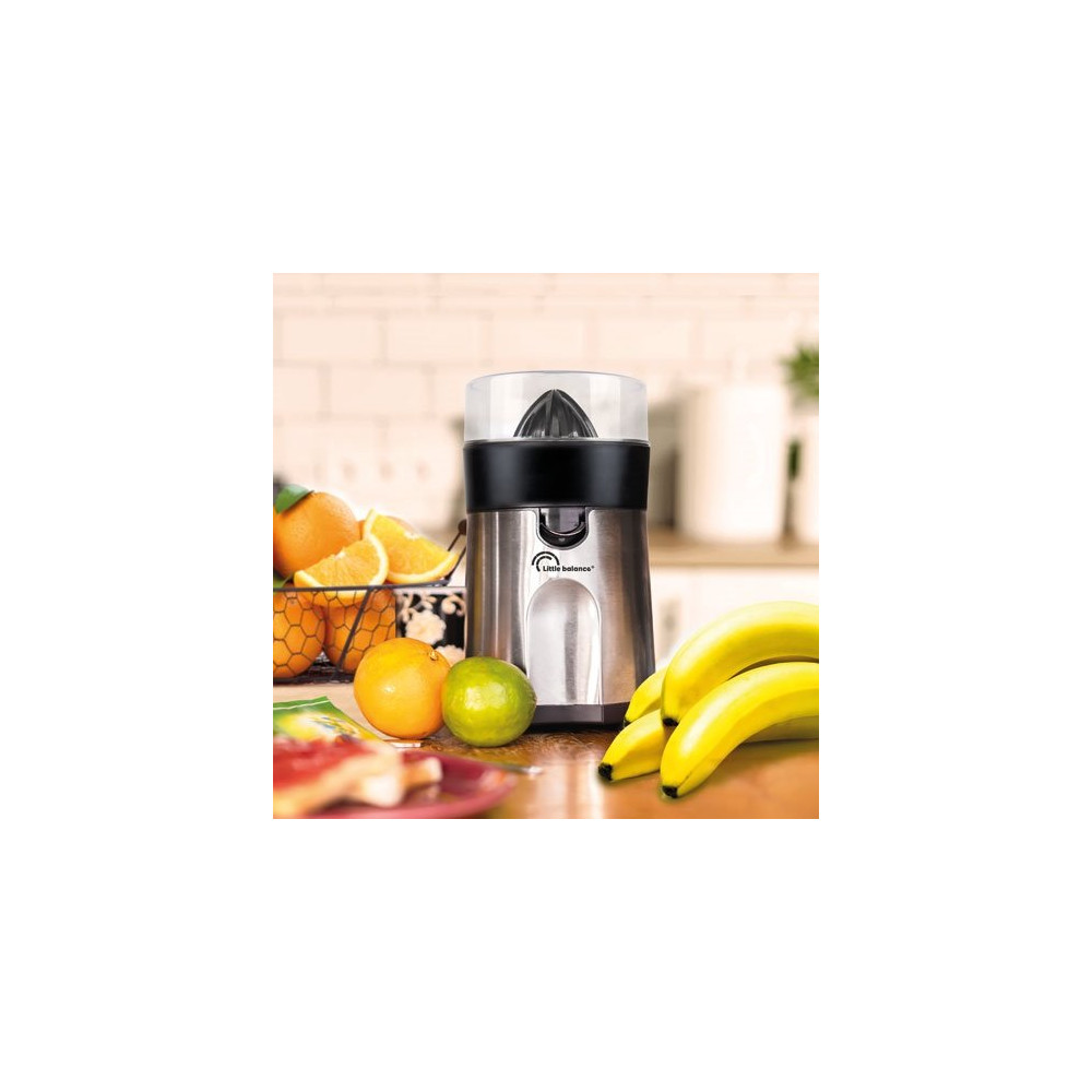 Élégant et efficace, le presse-agrumes VitamInox de Little Balance combine un design soigné avec des performances à la hauteur des attentes des amateurs de jus frais. Sa finition noir mat et inox brossé lui confère une allure haut de gamme qui s'intègre parfaitement sur n'importe quel plan de travail moderne.