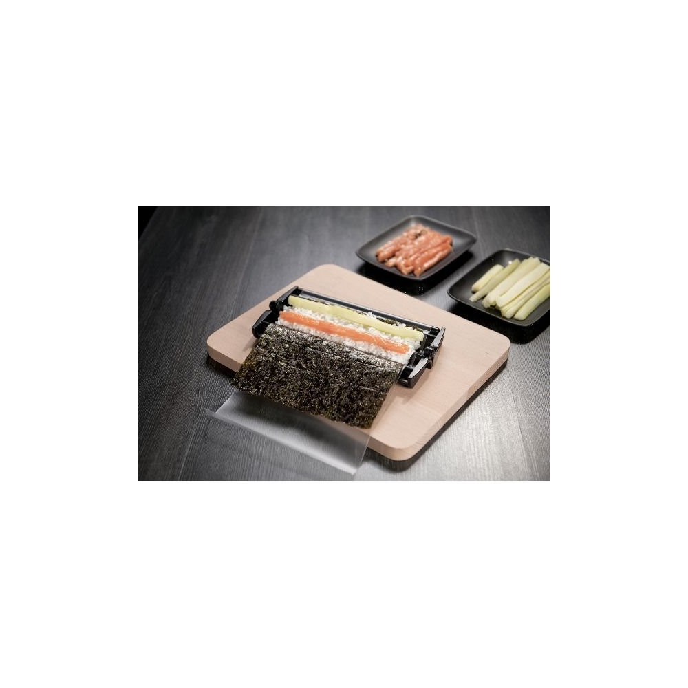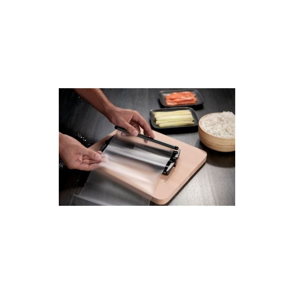 Que vous soyez novice ou habitué des cuisines asiatiques, l'appareil Easy Sushi transforme la préparation de vos rouleaux en moment de plaisir partagé. Les films de traction sont remplaçables (lot de rechange disponible séparément) pour prolonger la durée de vie de l'ensemble. Un ustensile original et pratique à offrir ou à s'offrir pour varier les plaisirs en cuisine.