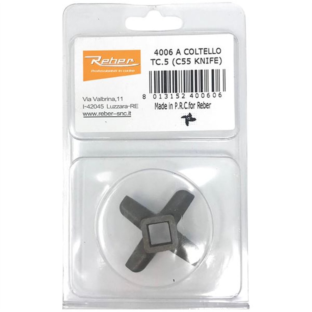 Le couteau pour hachoir électrique REBER N°5 est la pièce maîtresse du système de hachage : sans un couteau en bon état, même la meilleure grille ne peut pas donner des résultats satisfaisants. Ce couteau d'origine REBER est conçu spécifiquement pour les hachoirs électriques de la gamme N°5, garantissant un ajustement précis et un hachage net.